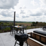 La grande terrasse vous offre une vue magnifique sur la campagne environnante et possède un coin -barbecue..